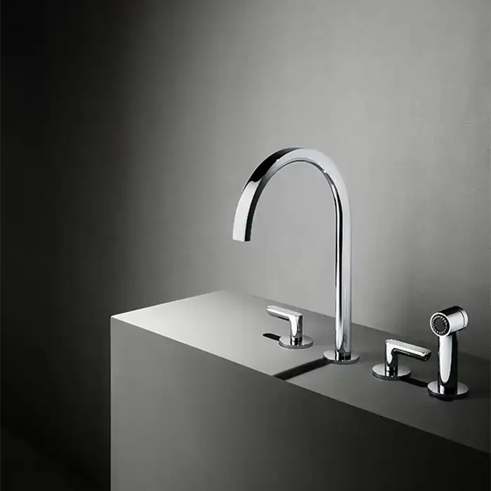 Fantini Icona Deco Смеситель для кухни, 4 отв, без донного клапана, излив 215мм, с ручн душем, цвет: хром