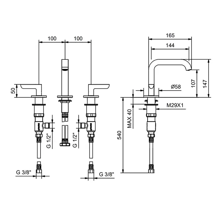 Fantini Icona Deco Смеситель для раковины, 3 отв., без донного клапана, излив: 14.5см, цвет: никель