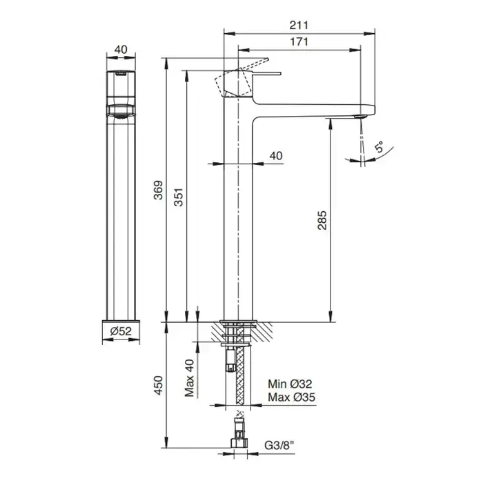 Fantini Lame Смеситель для раковины, 1 отверстие, высокий излив, цвет: хром