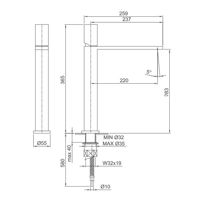 Fantini Milano Смеситель для раковины, 1 отв., излив: 220 мм, цвет: матовая натуральная сталь