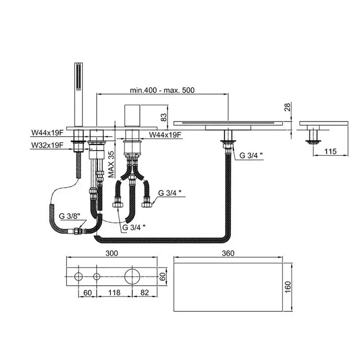 Fantini Milano Смеситель для ванны, набортный, излив: 115 мм, цвет: Matt Gun Metal PVD