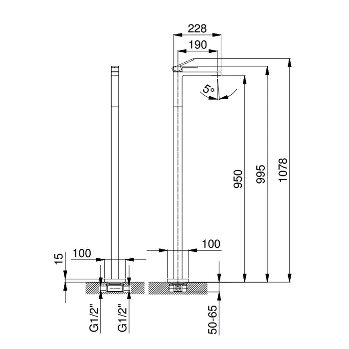 Fantini Mint Смеситель для раковины, напольный, внешняя часть, цвет: черный матовый