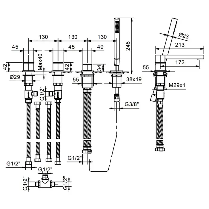 Fantini Mint Смеситель на борт ванны, цвет: нержавеющая сталь