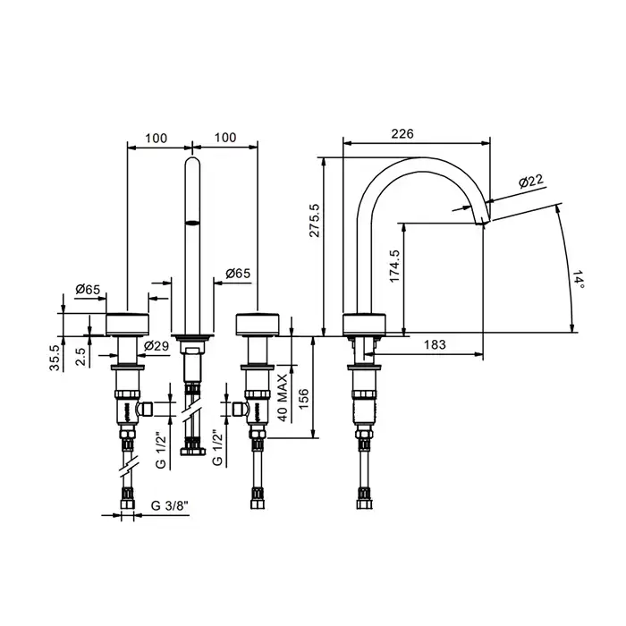 Fantini Nice Смеситель для раковины, 3 отв., излив 18.3см, цвет: хром