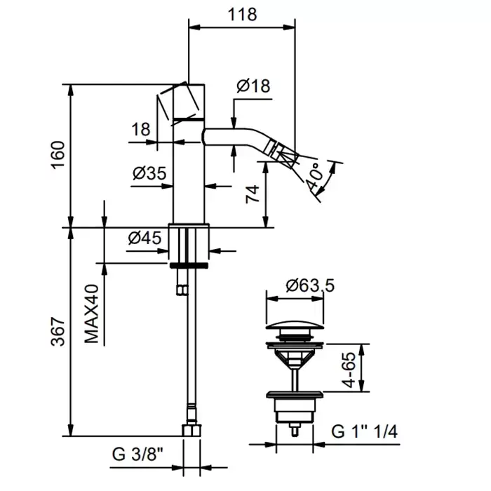 Fantini Nostromo SMALL Смеситель для биде, на 1 отв., цвет: хром