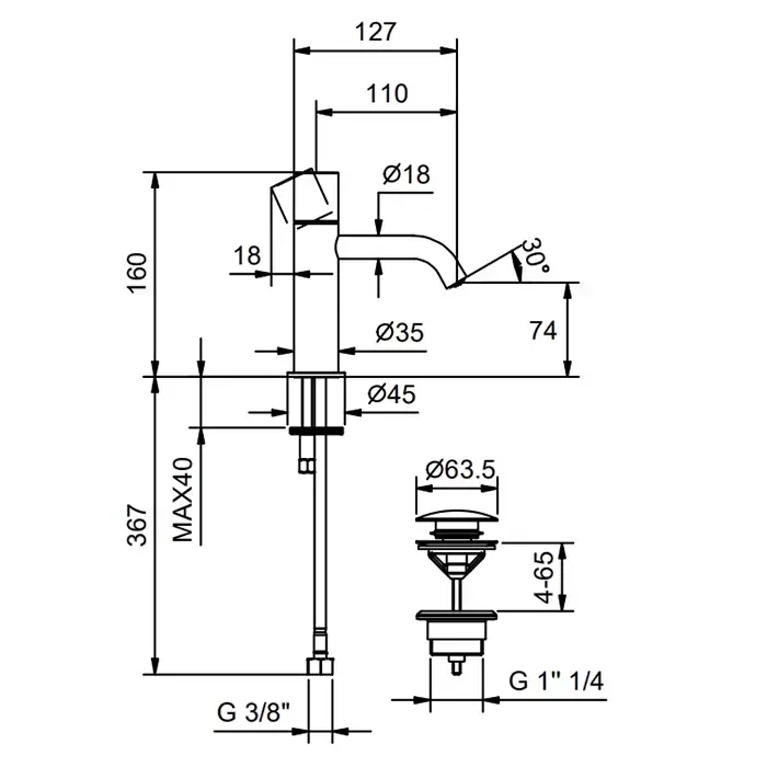 Fantini Nostromo SMALL Смеситель для раковины на 1 отв., цвет: черный матовый