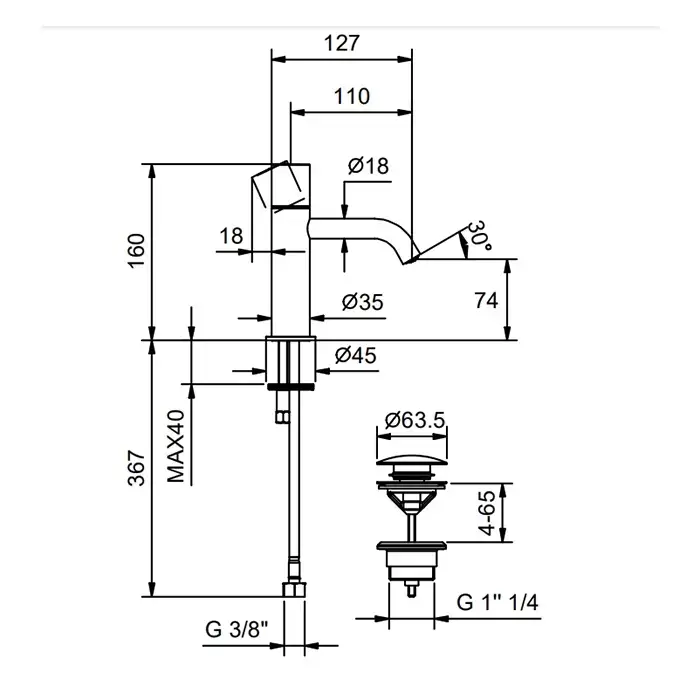 Fantini Nostromo SMALL Смеситель для раковины, на 1 отв., цвет: хром