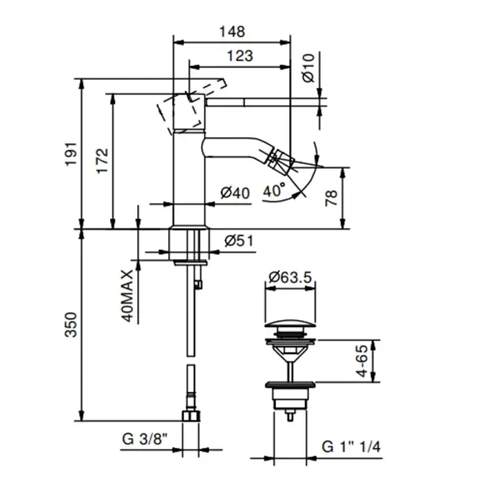 Fantini Nostromo Смеситель для биде, 1 отв., с донным клапаном, цвет: черный матовый
