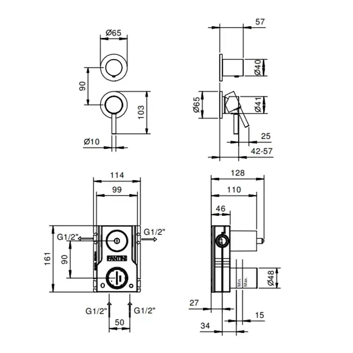 Fantini Nostromo Смеситель для душа, встраиваемый, цвет: черный матовый