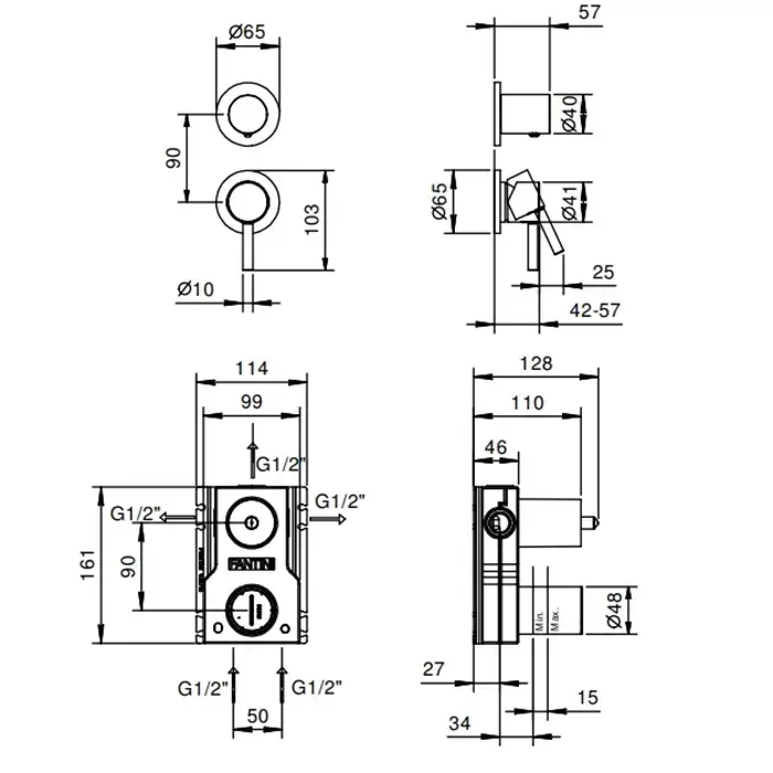 Fantini Nostromo Смеситель для душа, встраиваемый, переключатель на 3 источника, цвет: черный матовый