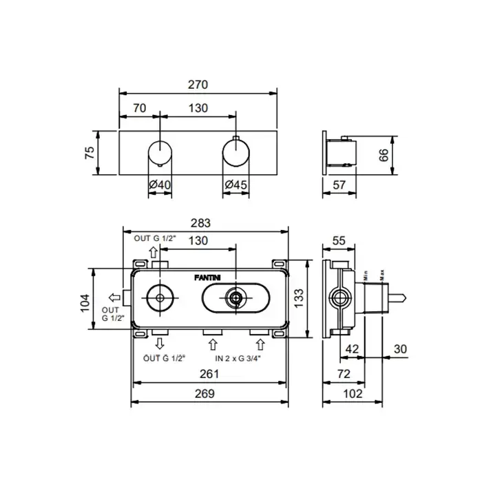 Fantini Nostromo Смеситель для душа, встраиваемый, термостатический, внешняя часть, цвет: Matt Gun Metal PVD