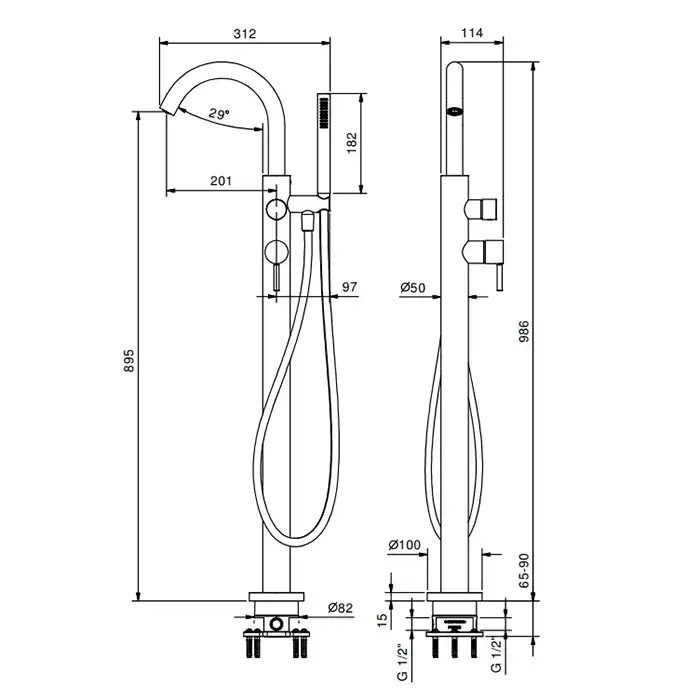 Fantini Nostromo Смеситель для ванны, напольный, излив: 20.1см, внешняя часть, цвет: Matt British Gold PVD
