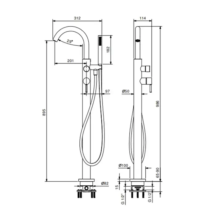 Fantini Nostromo Смеситель для ванны, напольный, излив 20.1см., внешняя часть, цвет Matt Gun Metal PVD