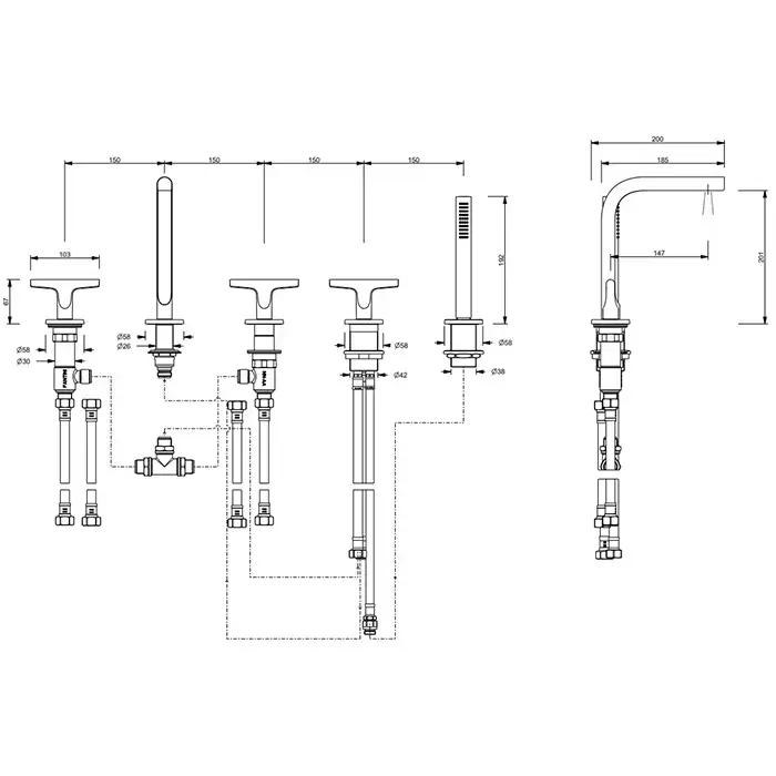Fantini Sailing Смеситель для на борт ванны, на 5 отверстий, с изливом, ручным душем и шлангом 150см., цвет: Deep Black PVD