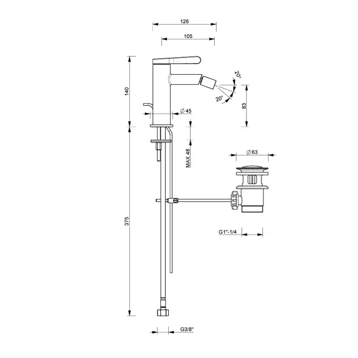 Fantini Torino Смеситель для биде на 1 отверстие, излив 10,5 см, с донн клап, цвет: хром