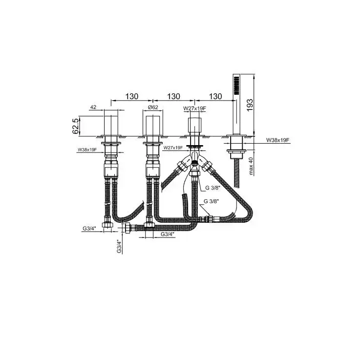 Fantini Venezia In Смеситель для ванны, набортный, 4 отв., без излива, цвет: золото плюс
