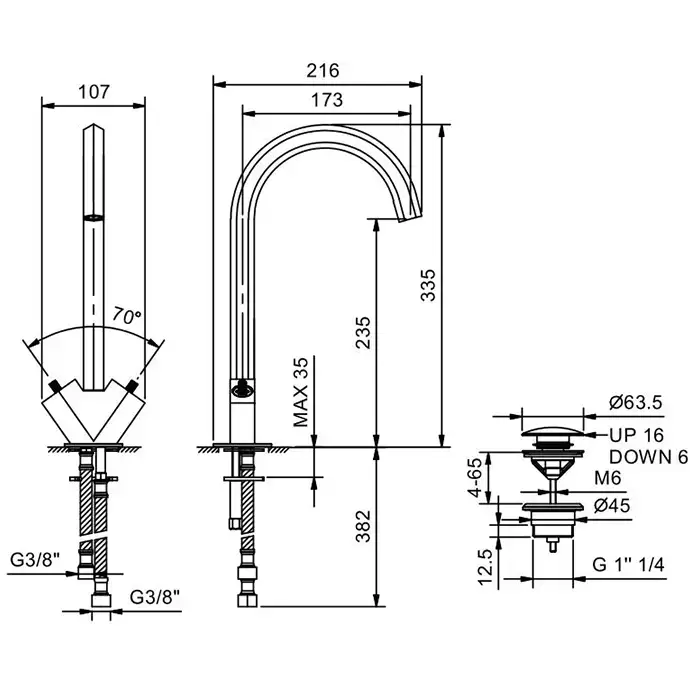 Fantini Venezia Смеситель для раковины, 1 отв., излив: 175 мм, цвет: Matt Copper PVD