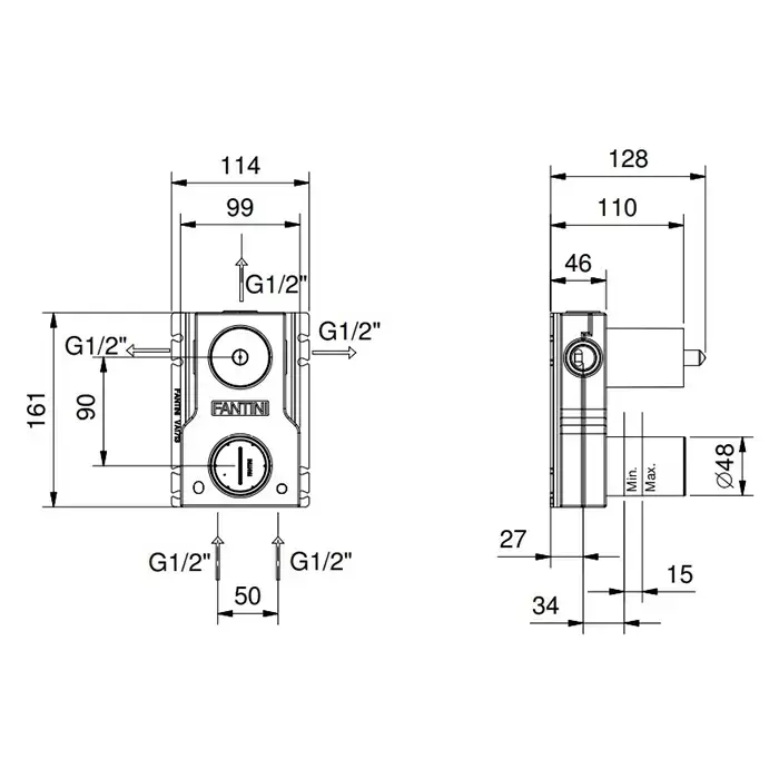 Fantini Внутренняя часть смесителя для душа, переключатель на 3 источника, 1/2"