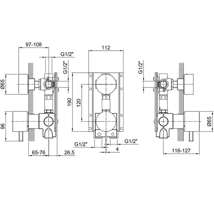 Fantini Внутренняя часть смесителя для душа, переключатель на 3 источника, с Eco System, 1/2'