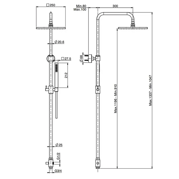 Fima Carlo Frattini Colonne doccia Душевая стойка, верхний душ 25x25см., с держателем и ручным душем, цвет: черный матовый
