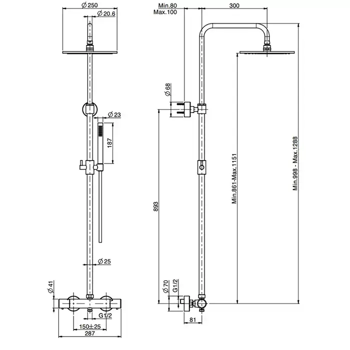 Fima Carlo Frattini Colonne doccia Душевая стойка, верхний душ 25см., с термостатическим смесителем Spillo Tech, держателем и ручным душем, цвет: хром