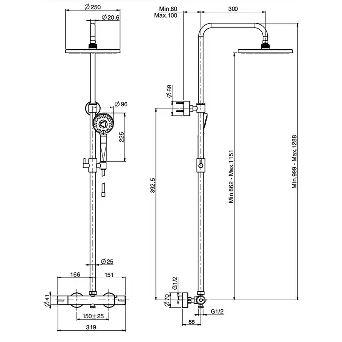 Fima Carlo Frattini Colonne doccia Душевая стойка, верхний душ 25см., со смесителем, с держателем и ручным душем, цвет: хром