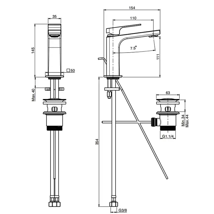 Fima Carlo Frattini Fit Смеситель для раковины, на 1 отв., с донным клапаном, цвет: хром