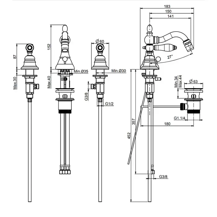 Fima Carlo Frattini Herend Cмеситель для биде, на 3 отв., с донным клапанном, цвет: золото