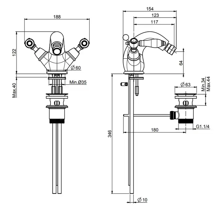Fima Carlo Frattini Herend Смеситель для биде, на 1 отв., черные ручки, цвет: хром