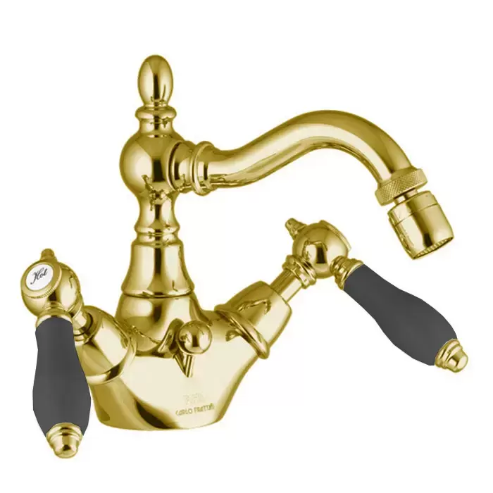 Fima Carlo Frattini Herend Смеситель для биде, на 1 отв., с донным клапаном, черные ручки, цвет: золото