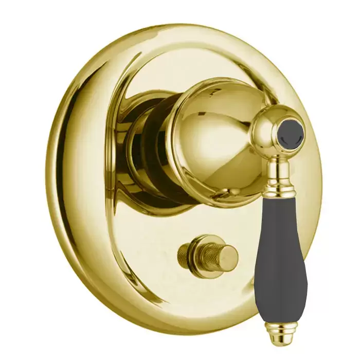 Fima Carlo Frattini Herend Смеситель для душа, встраиваемый, на 2 выхода, черные ручки, цвет: золото