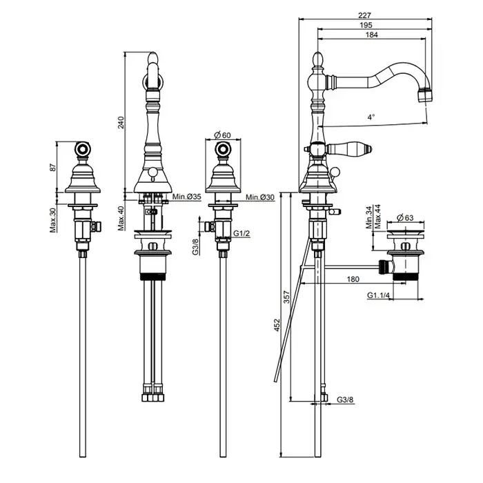 Fima Carlo Frattini Herend Смеситель для раковины, на 3 отв., с донным клапаном, цвет: хром