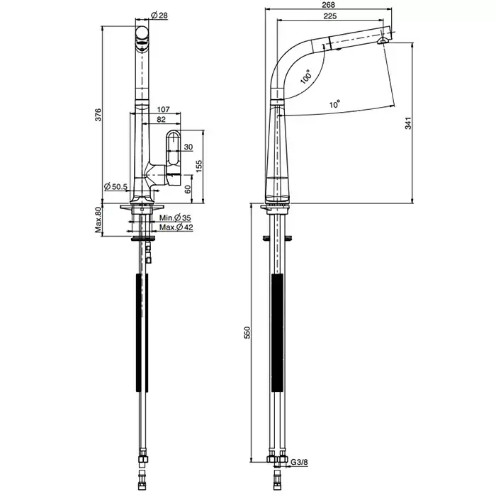 Fima Carlo Frattini Kitchen Смеситель для кухни, на 1 отв., с выдвижной лейкой Skinny, цвет: черный матовый