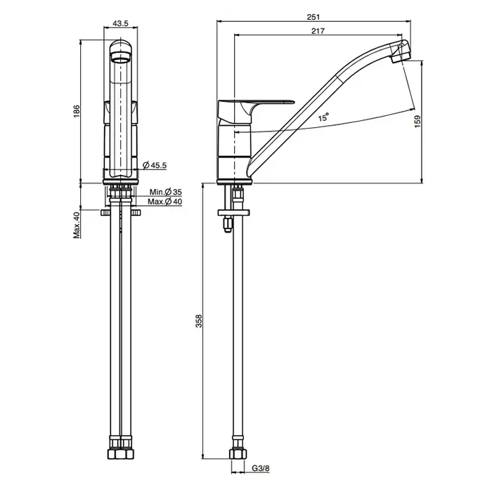 Fima Carlo Frattini Kitchen Смеситель для кухни, на 1 отв., Serie 22, цвет: хром