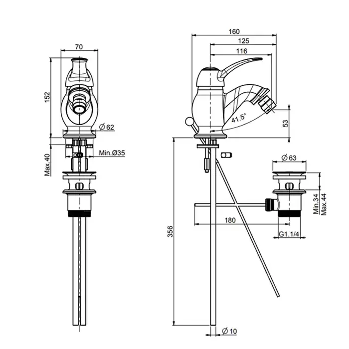 Fima Carlo Frattini Lamp Смеситель для биде, на 1 отв., с донным клапаном, цвет: золото