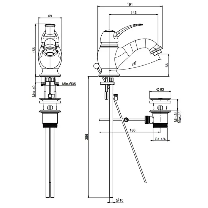 Fima Carlo Frattini Lamp Смеситель для раковины, на 1 отв., с донным клапаном, цвет: золото