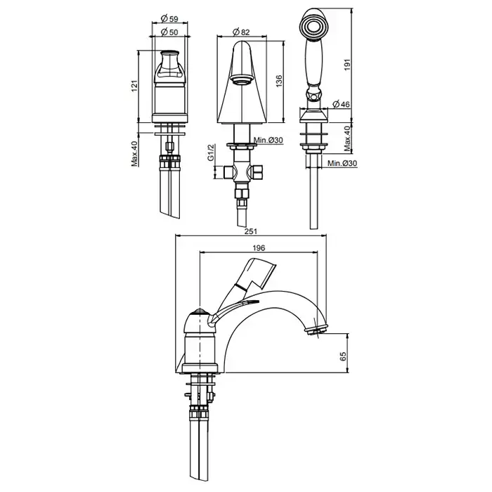 Fima Carlo Frattini Lamp Смеситель на борт ванны, на 3 отв., с ручным душем, цвет: золото