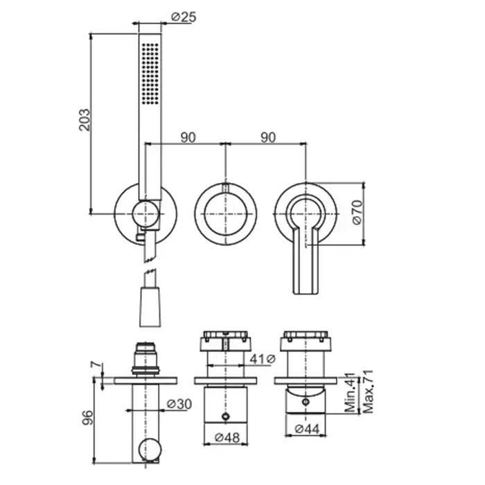 Fima Carlo Frattini Mast Смеситель для душа, встраиваемый, на 2 источника с ручным душем, цвет: черный матовый