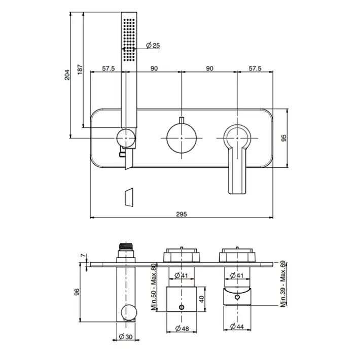 Fima Carlo Frattini Mast Смеситель для душа, встраиваемый, на 2 источника с ручным душем, цвет: черный матовый