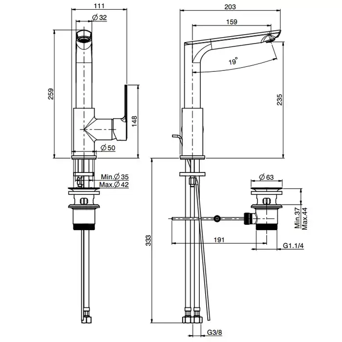 Fima Carlo Frattini Mast Смеситель для раковины, на 1 отв., с литьевым вращающимся изливом, цвет: черный матовый