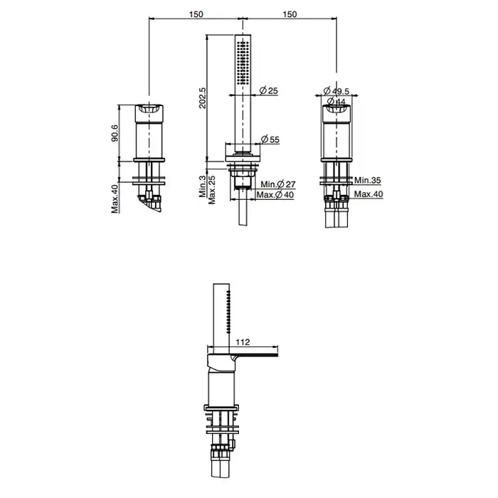 Fima Carlo Frattini Mast Смеситель на борт ванны, на 3 отв., с ручным душем, цвет: хром