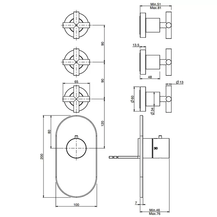 Fima Carlo Frattini Maxima Смеситель для душа, встраиваемый, термостатический, с переключателем на 3 выхода, цвет: черный матовый