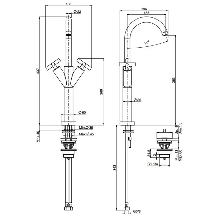 Fima Carlo Frattini Maxima Смеситель для раковины, на 1 отв., высокий, h: 43.7см., цвет: черный матовый