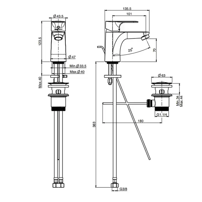 Fima Carlo Frattini Serie 22 Смеситель для раковины, с донным клапаном, цвет: хром