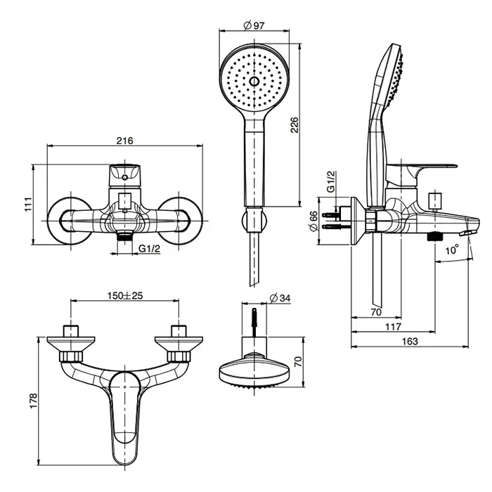 Fima Carlo Frattini Serie 22 Смеситель для ванны, настенный, цвет: хром