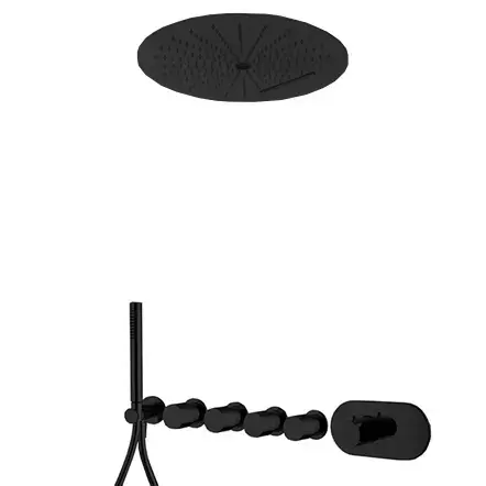 Fima Carlo Frattini Sistemi doccia Душевая Система с верхним душем 40см., смеситель термостатический, с ручным душем, на 4 выхода, цвет: черный матовый