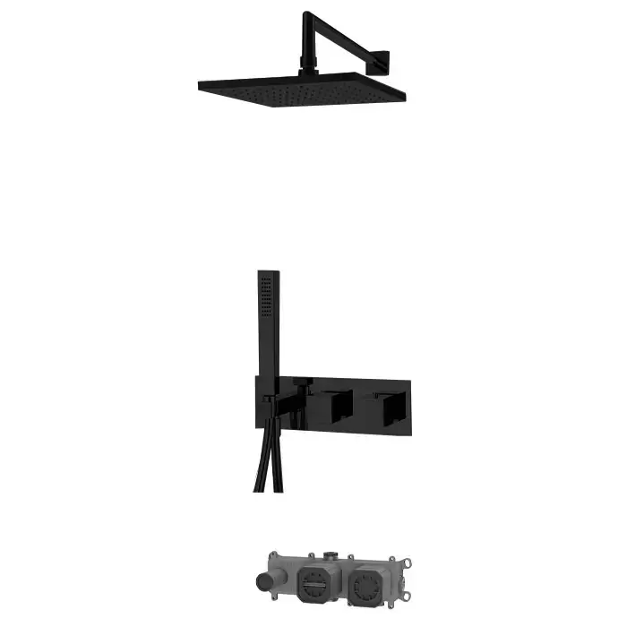 Fima Carlo Frattini Sistemi doccia Душевая система, верхний душ 25х25см., с термостатическим смесителем и ручным душем, на 2 источника, цвет: черный матовый