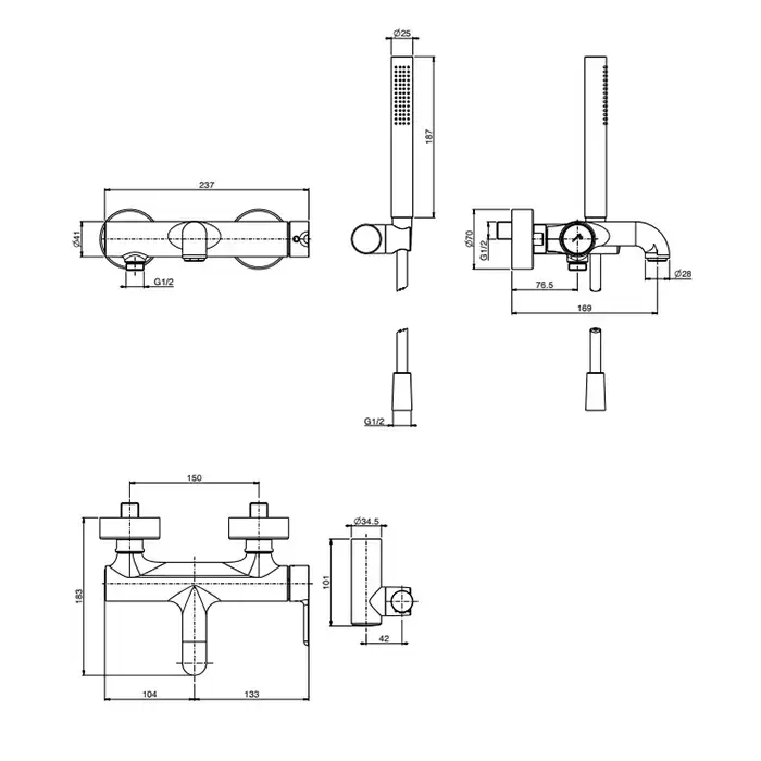 Fima Carlo Frattini Snap Смеситель для ванны, настнный, с ручным душем, цвет: черный матовый