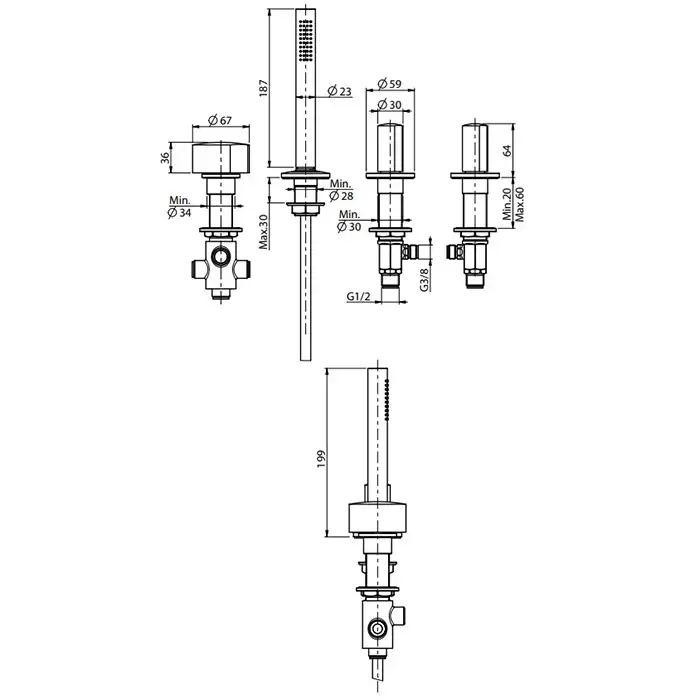 Fima Carlo Frattini So Смеситель на борт ванны, с 4 отв., с ручным душем, цвет: золото