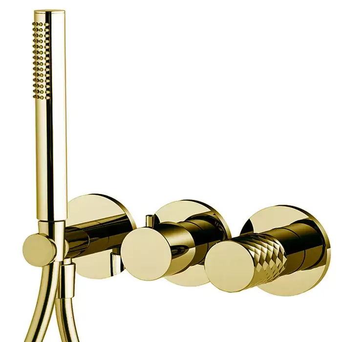 Fima Carlo Frattini Spillo Tech Смеситель для душа, встраиваемый, на 2 источника, с ручным душем, цвет: золото